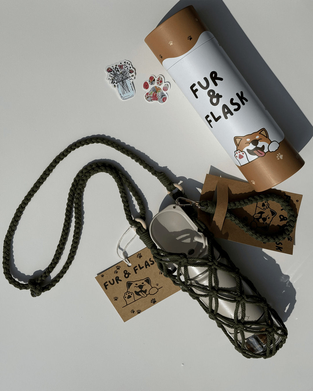 Adjustable macrame sling bags available in a variety of colors! The perfect match for your 2-in-1 pet water bottle. πΎπ